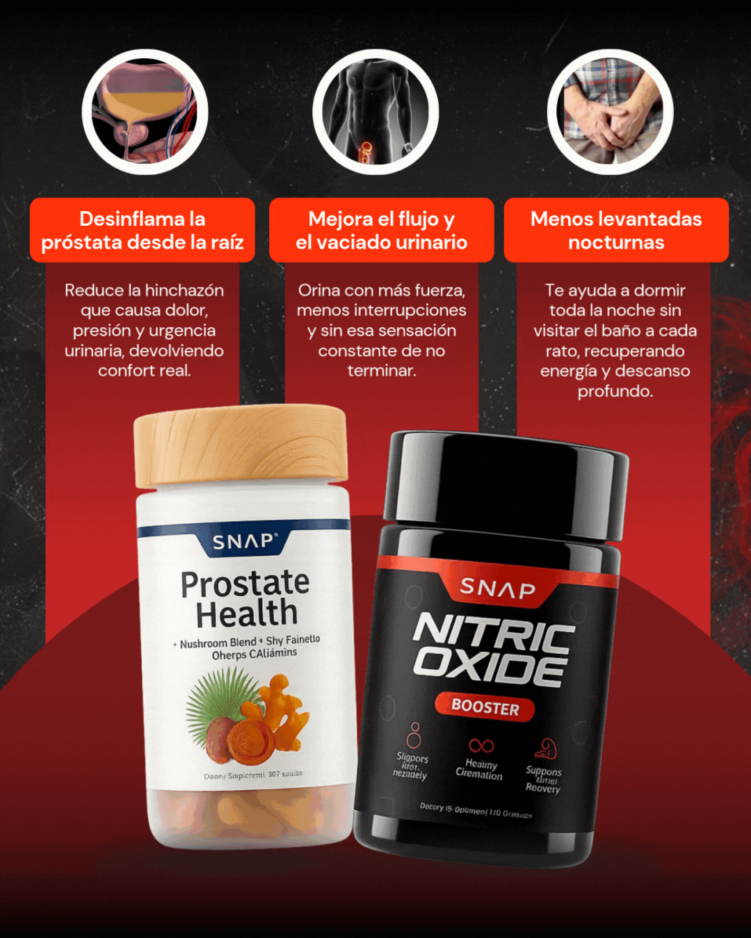 Orinas con más facilidad y terminas sin goteo. Se estabiliza la freciencia urinaria (menos urgencia más control). Recuperas la energía perdida durante años de dormir mal. Comienza una mejora natural en ánimo, vitalidad y confianza masculina.