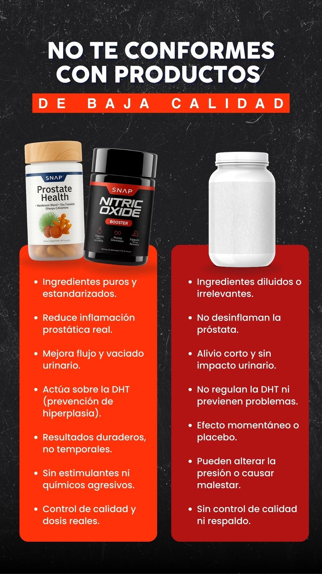 QUE NINGÚN HOMBRE DEBERÍA PERDER SU SUEÑO, SU ENERGÍA NI SU CONFIANZA POR UNA PRÓSTATA INFLAMADA. CREEMOS QUE LA NATULAREZA TIENE COMPUESTOS POTENTES CAPACES DE APOYAR LA SALUD MASCULINA SIN QUÍMICOS AGRESIVOS, SIN EFECTOS SECUANDARIOS Y SIN SOLUCIONES TEMPORALES.
